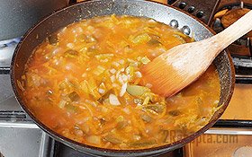 Следом добавить огурцы и влить немного бульона из кастрюли, тушить 10 минут.