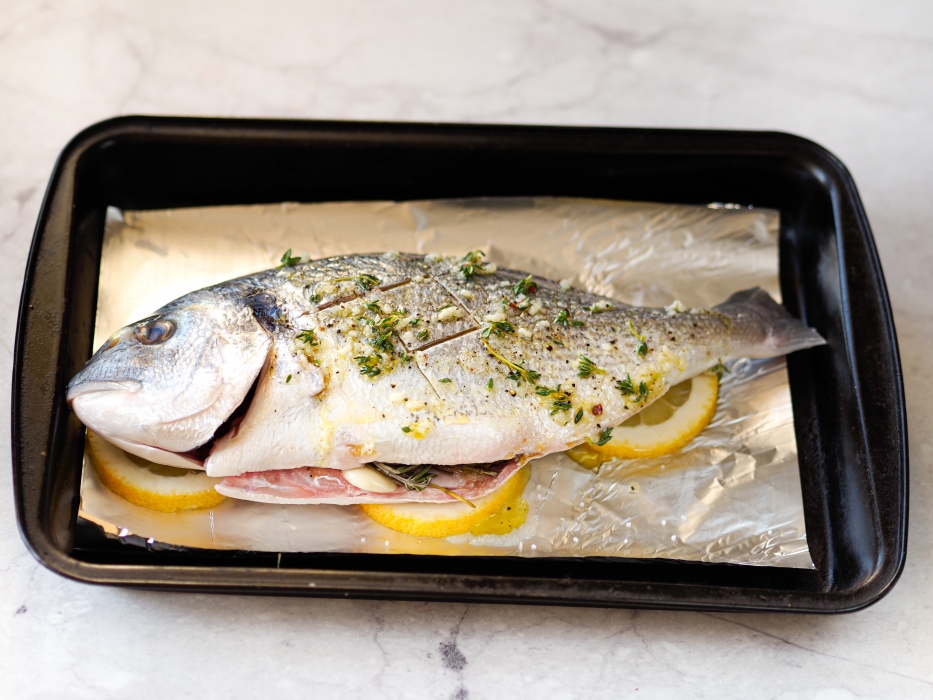 Не нужно ждать хрустящей корочки, в этом рецепте дорады, запеченной в духовке, главное - сохранить нежный вкус рыбы.